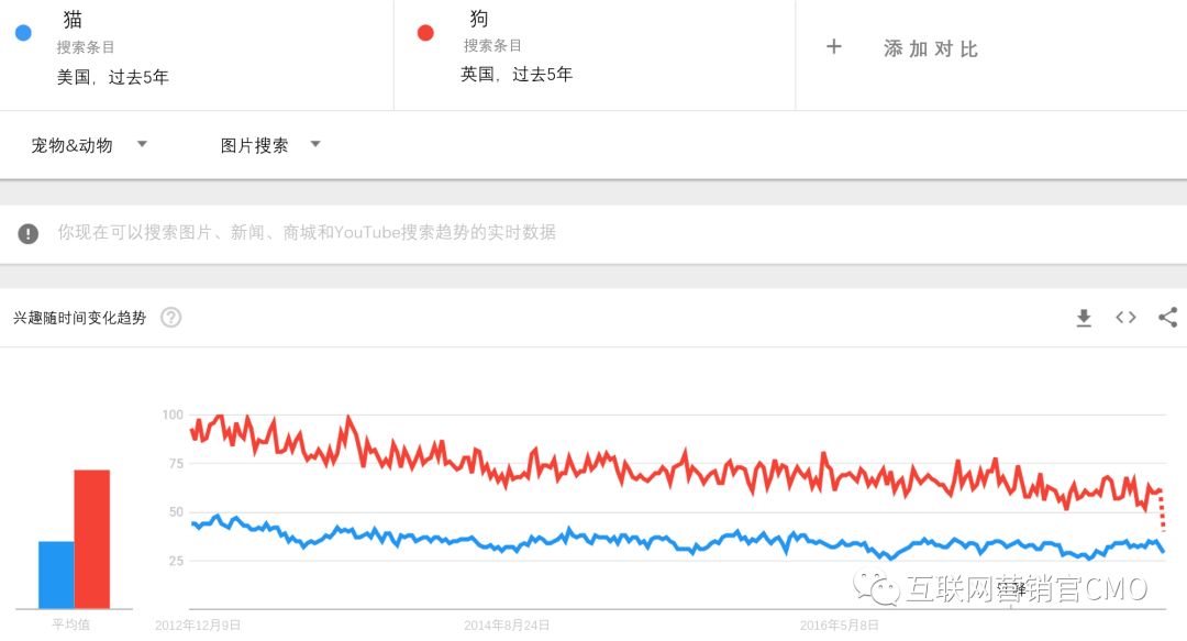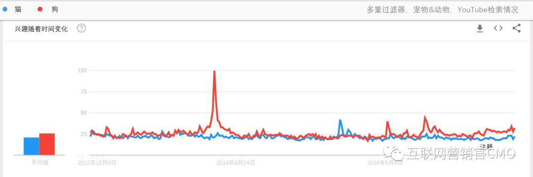 在YouTube上,永恒的猫与狗战争,辜负了它的火热声誉,两个搜索主题之间的差距很小: