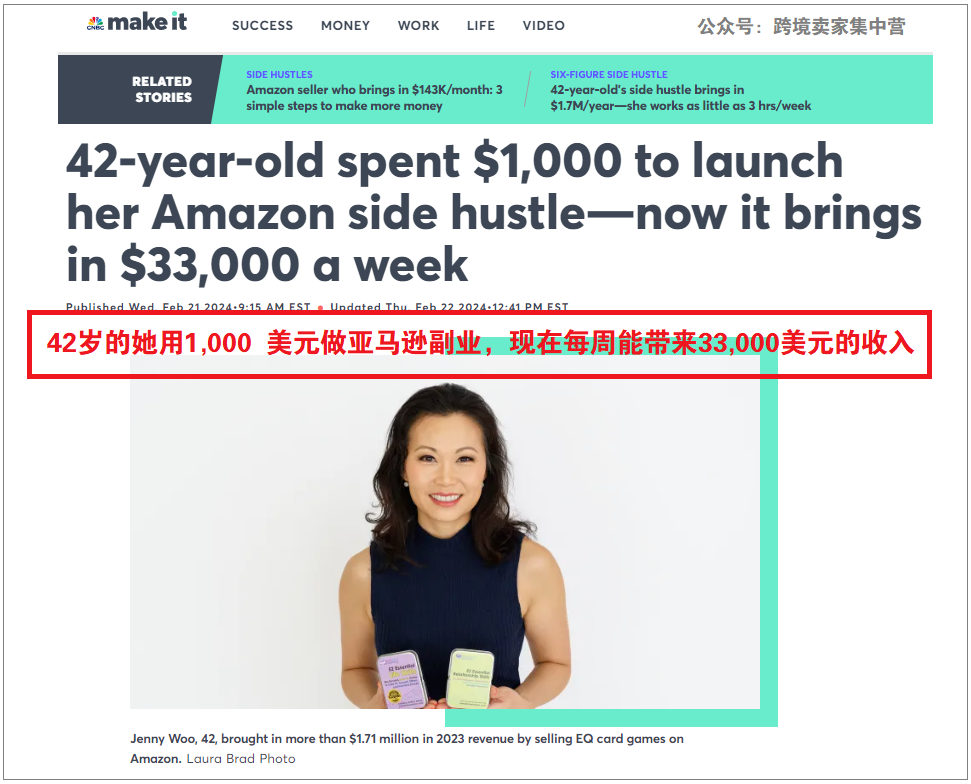 那篇文章,讲述了一个女孩,用亚马逊做副业,年入1200多万的励志故事。